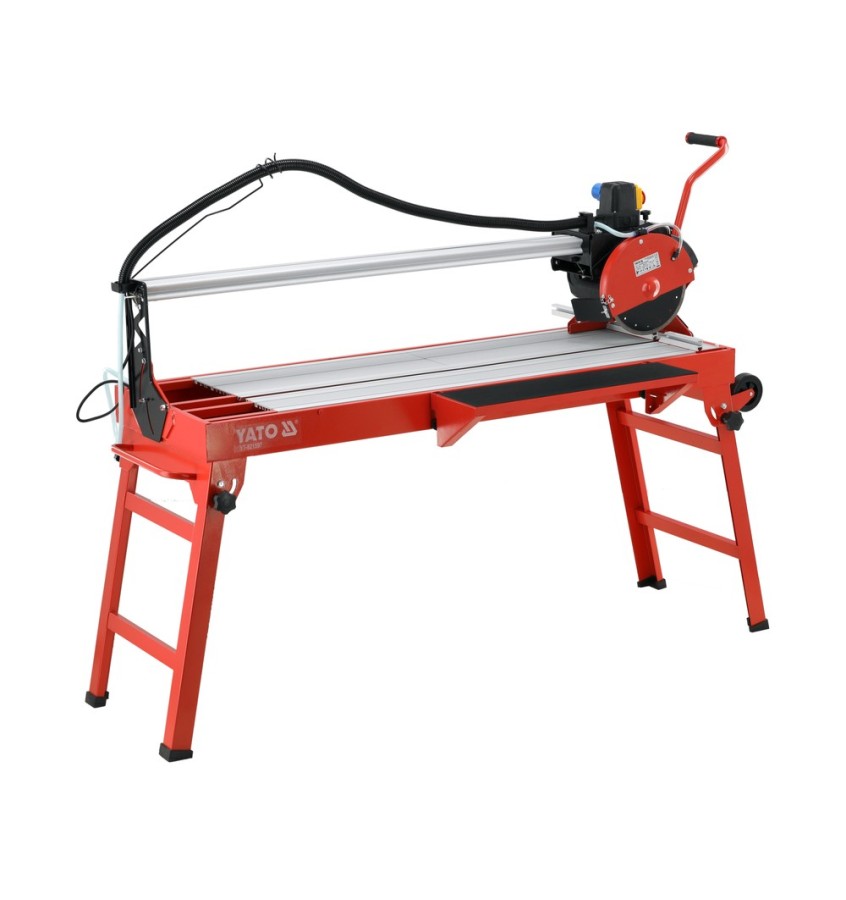 Przecinarka stołowa z prowadnicą i laserowym wskaźnikiem przeznaczona do cięcia na mokro tarczami diamentowymi materiałów ceramicznych - płytek, glazury, gresu, terakoty. Solidny stół ze sporą powierzchnią roboczą i dodatkowym blatem umożliwia przecinanie wielkoformatowych płytek o maksymalnym wymiarze 1200 x 600 mm.