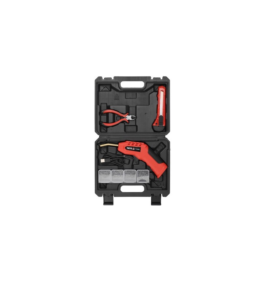 Bezprzewodowa, mała i poręczna zgrzewarka do plastiku. Rozgrzewa conajmniej 60 zszywek na maksymalnych ustawieniach na jednym naładowaniu. Pracuje w trzech trybach: do 400°C (I - L), 500°C (II- M) i 600°C (III - H).