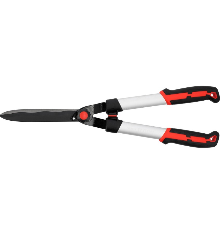 Aluminiowe nożyce do żywopłotu z falistym ostrzem długości 220 mm, wykonanym z trwałej i odpornej stali węglowej. Umożliwiają precyzyjne i czyste cięcie gałęzi do średnicy 6 mm, ułatwiając codzienną pielęgnację krzewów ogrodowych i kształtowanie żywopłotu. Powłoka PTFE pokrywająca górne ostrze ogranicza przywieranie soków, wydłużając żywotność narzędzia.