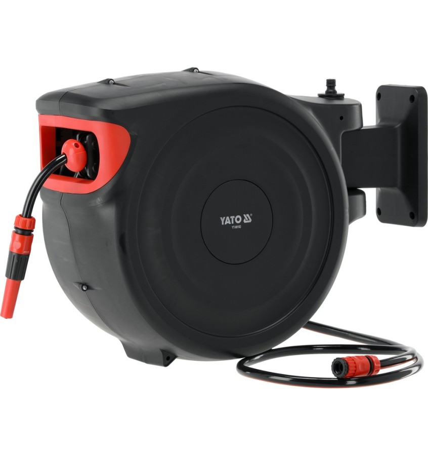 System automatycznego zwijania ułatwia i przyspiesza chowanie węża po skończonym podlewaniu, przechowywanie go bez zagięć i supłów oraz utrzymanie porządku wśród narzędzi ogrodowych. Montaż naścienny i ukrycie węża w całości w bębnie pozostawia więcej miejsca do zagospodarowania na posadzce w garażu lub przed domem.