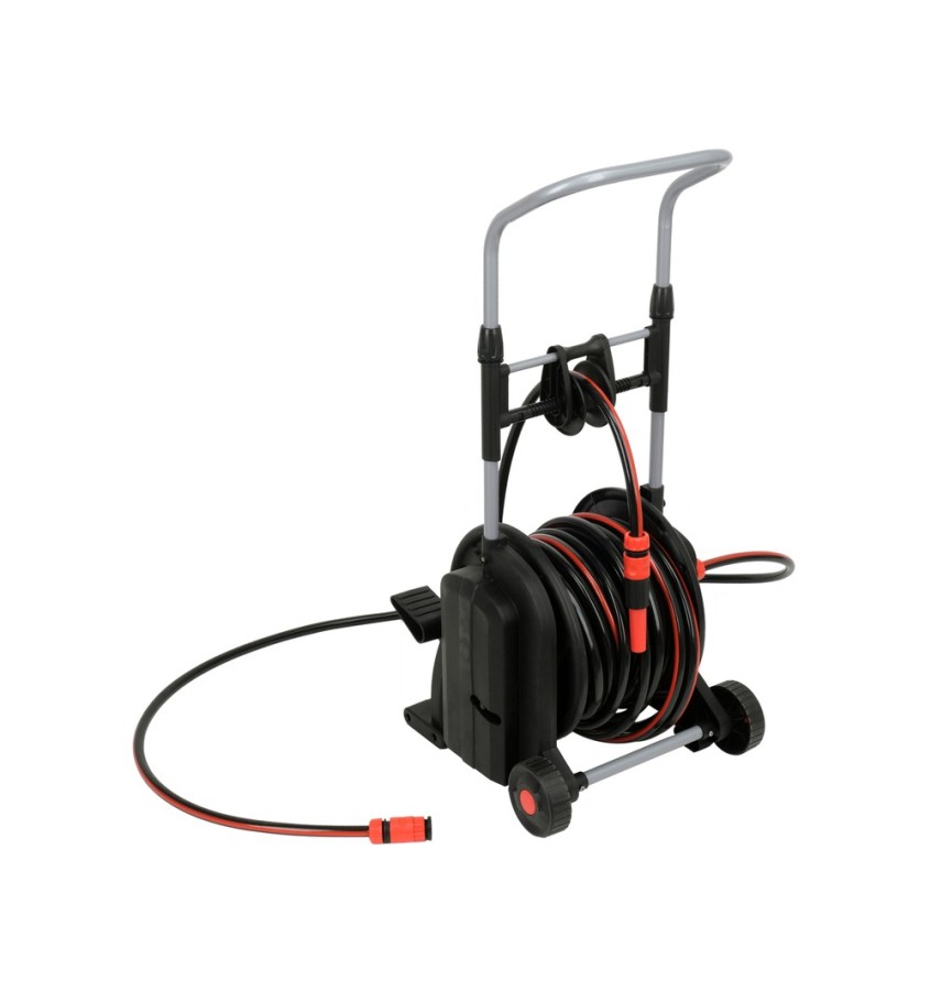 Opis produktu: WĄŻ NA WÓZKU 25 M ZWIJANY STOPĄ