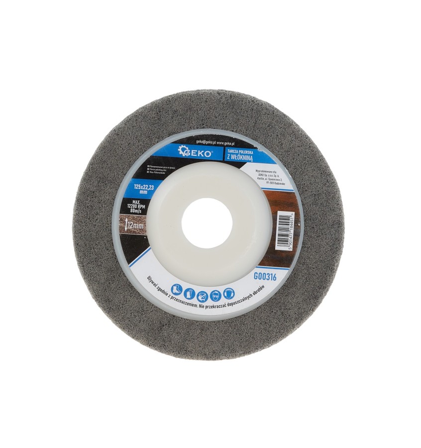Tarcza polerska z włókniny ma średnicę 125 mm i otwór 22,23 mm, co pasuje do większości szlifierek kątowych. Tarcza ma grubość 12 mm i jest wykonana z wysokiej jakości włókniny szlifierskiej, która zapewnia długą żywotność i odporność na zużycie. Tarcza polerska z włókniny może pracować z maksymalną prędkością obrotową 12 200 obr/min i obwodową 80 m/s, co gwarantuje szybką i efektywną pracę.