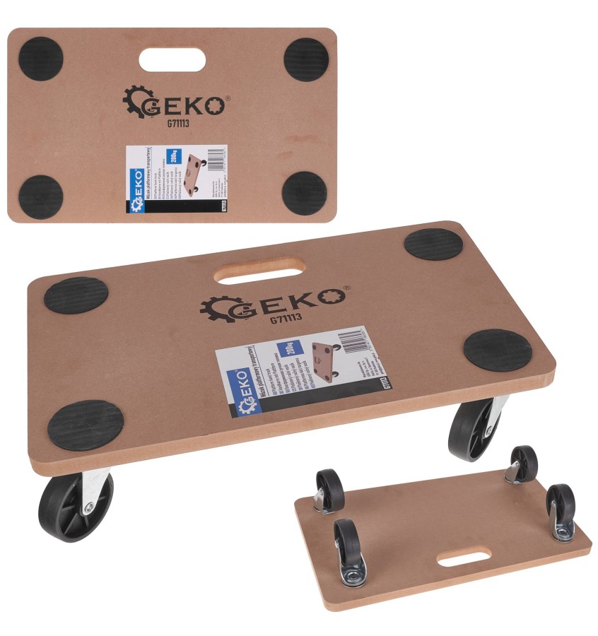 Wózek - platforma transportowa wykonana z wytrzymałej płyty MDF z zamontowanymi czterema kołami.