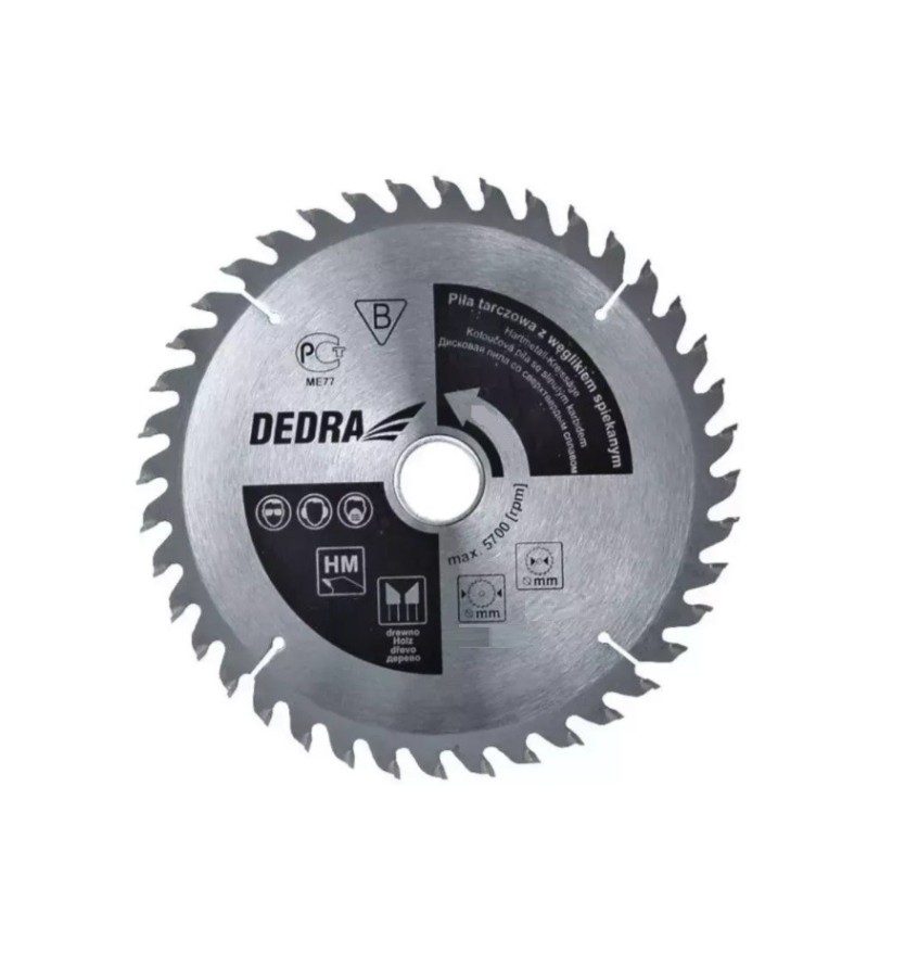 Piła tarczowa do cięcia wszystkich typów drewna. W celu zwiększenia wytrzymałości zębów oraz poprawienia jakości i skuteczności cięcia zęby pokryte zostały węglikiem spiekanym.