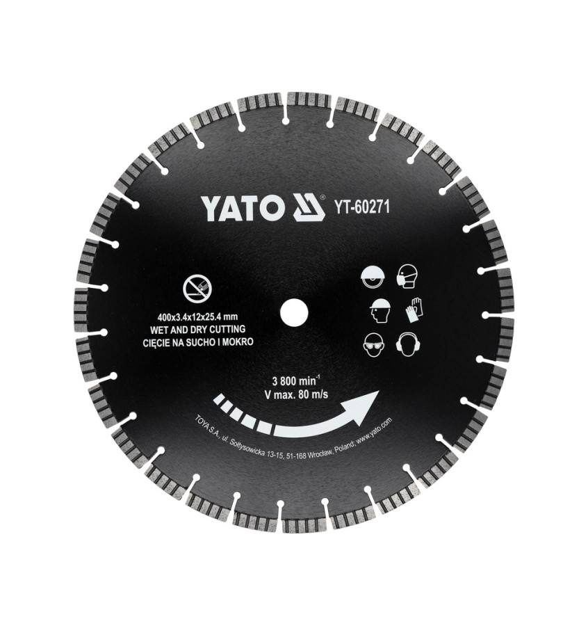 Tarcza diamentowa przeznaczona do pracy na sucho i mokro betonie utwardzonym i zbrojonym, cegle, granicie, murze, kamieniu, piaskowcu.