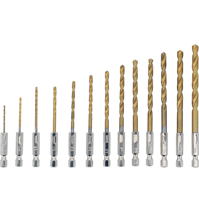 Zestaw 13 wierteł do metalu wykonanych ze stali szybkotnącej HSS, która sprawia, że wiertła są wyjątkowo mocne, trwałe i odporne na ścieranie, umożliwiając pracę z dużymi prędkościami. Powierzchnia pokryta azotkiem tytanu zwiększa ich twardość, odporność na zużycie, ciepło i korozję, a także zmniejsza tarcie. Doskonale sprawdzają się do wysokowydajnej obróbki skrawaniem.