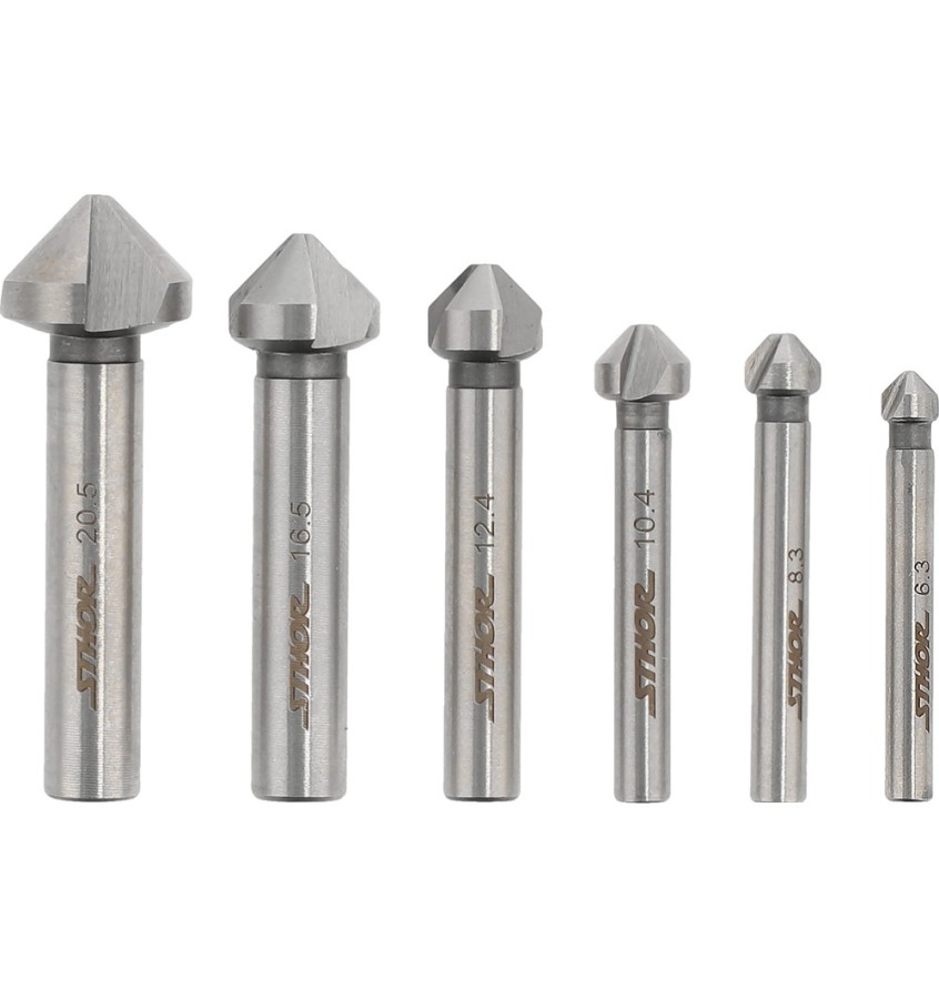 Zestaw 6 pogłębiaczy do metalu wykonanych ze stali szybkotnącej HSS, która sprawia, że są wyjątkowo mocne, trwałe i odporne na ścieranie, umożliwiając pracę z dużymi prędkościami. Doskonale sprawdzają się do powiększania, kształtowania i fazowania krawędzi otworów, obróbki powierzchni wokół otworu lub usuwania zadziorów.