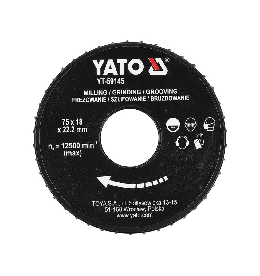 Dzięki maksymalnym obrotom 12500 obr./min frez pracuje wydajnie, zachowując przy tym bezpieczeństwo użytkowania. Otwór mocujący 22,2 mm umożliwia wygodne dopasowanie do standardowych szlifierek kątowych.