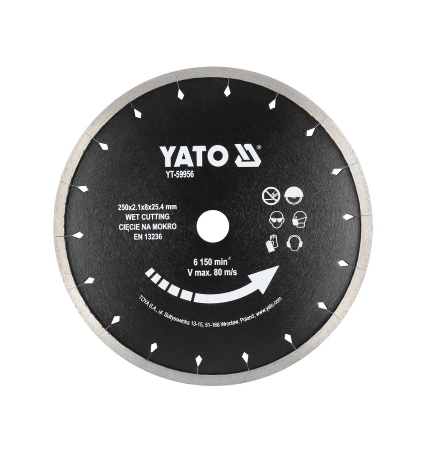 Opis produktu: TARCZA DO CERAMIKI I TWARDEGO GRESU (NA MOKRO) 250mm, OTWÓR MOCUJĄCY 25,4mm