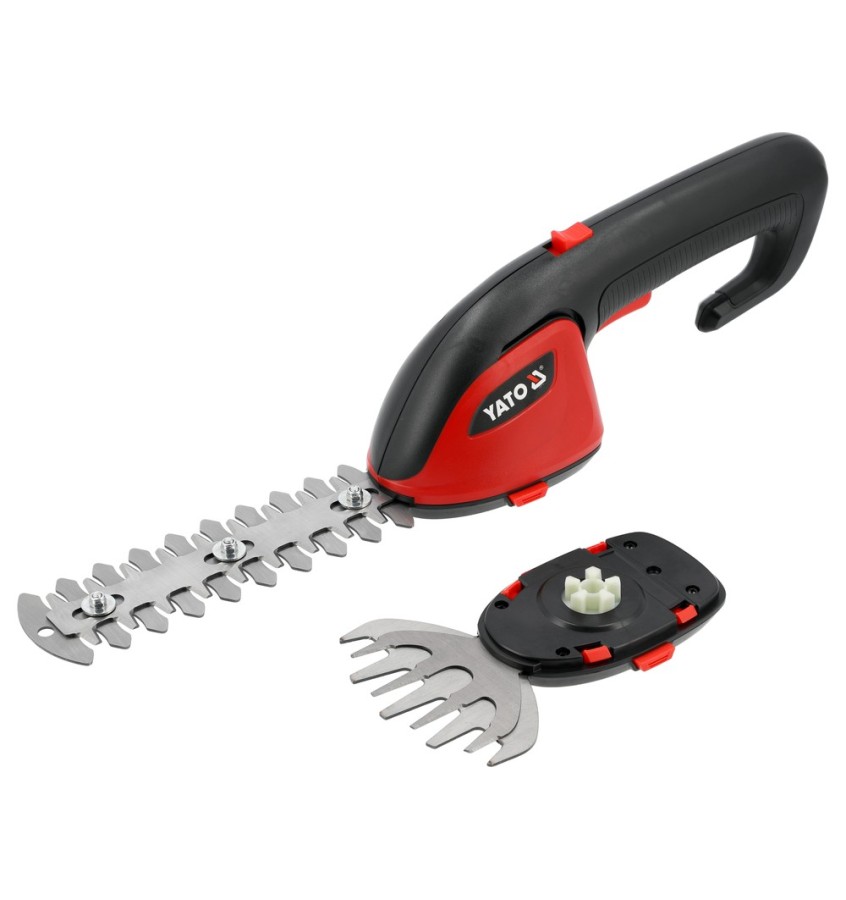 - zawartość zestawu: nożyce, przystawka do cięcia trawy, przystawka do cięcia żywopłotu, kabel ładujący