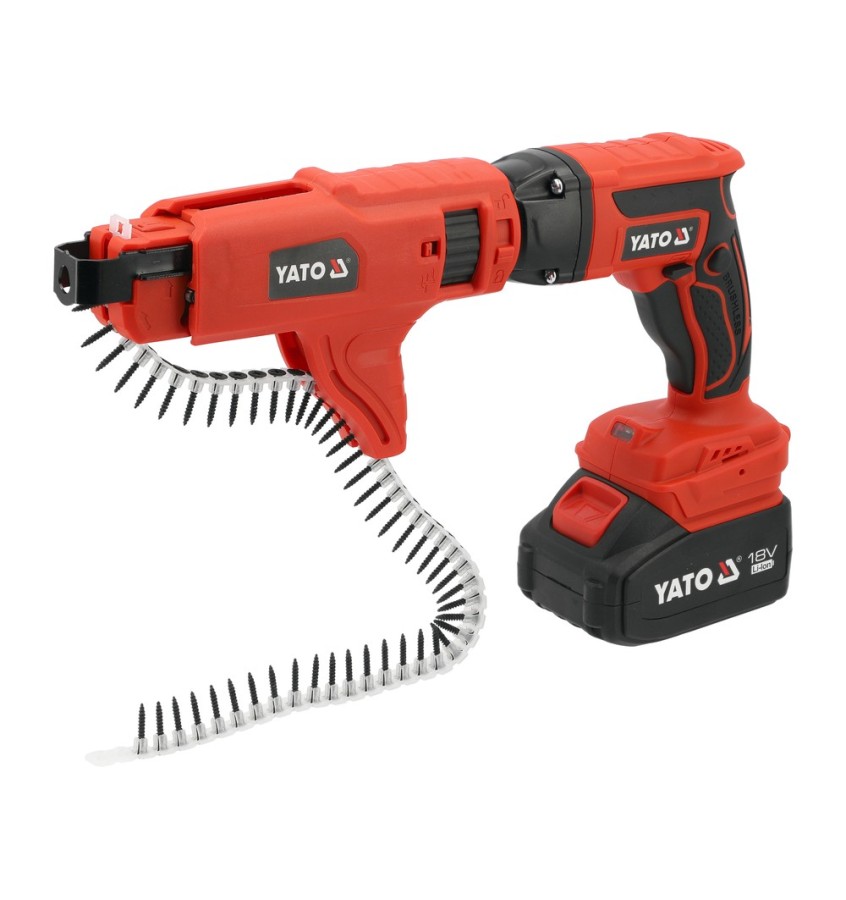 Opis produktu: WKRĘTARKA TAŚMOWA AKUMULATROWA 18V DO REGIPSÓW 4Ah Yato WALIZKA