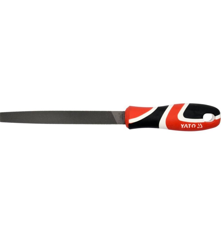 Pilnik płaski, zbieżny, raz cięty, z trójkomponentową rękojeścią.