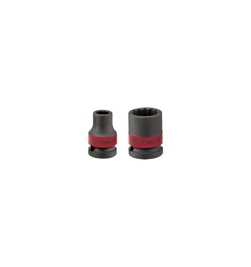 Nasadka udarowa ze stali chromowo molibdenowej fosforanowana. Cienkościenna konstrukcja po stronie kwadratu. Kwadrat 1/2", 12-kątna. Rozmiar calowy. ANSI/ASME B107.2.